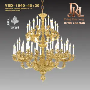 Đèn chùm đồng phòng khách kiểu Pháp, Châu Âu, sảnh khách sạn, không gian sang trọng, đèn đồng YSD-1940-40+20