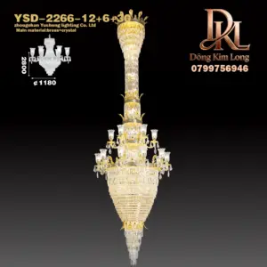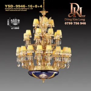 Đèn chùm sang trọng cao cấp bằng đồng nguyên chất trang trí sảnh biệt thự, phòng khách, cầu thang khách sạn YSD-1925-24+6