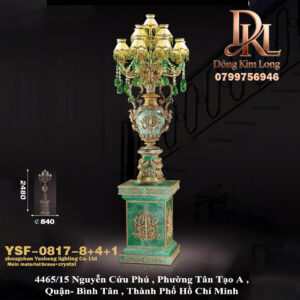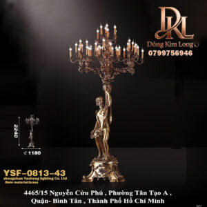 Đèn bàn lớn phòng khách biệt thự kiểu Pháp bằng đồng nguyên khối phong cách châu Âu sang trọng, trang trí quầy lễ tân khách sạn, cung điện cổ điển, đèn đồng phủ sáp YST-2122-6+3+1