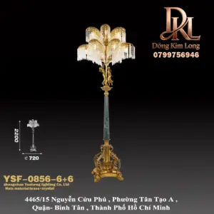 Đèn sàn pha lê sang trọng bằng đồng nguyên chất kiểu Pháp cổ điển, lớn, trang trí cho sảnh, tiền sảnh và phòng khách phong cách Châu Âu YSF-0856-6+6